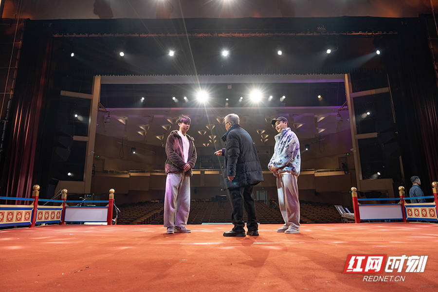 红网时刻新闻1月17日讯(记者 陈雅如 龚子杰)“叶老师,您好!”1月16日晚,湖南花鼓戏经典唱段音乐会在湖南戏曲演出中心上演。后台灯光暖融,新国风幻境秀《新刘海砍樵》中“刘海”扮演者熊维化好妆,正往服装间赶,忽然瞥见一个熟悉的身影——他赶忙停下脚步,恭敬问好。