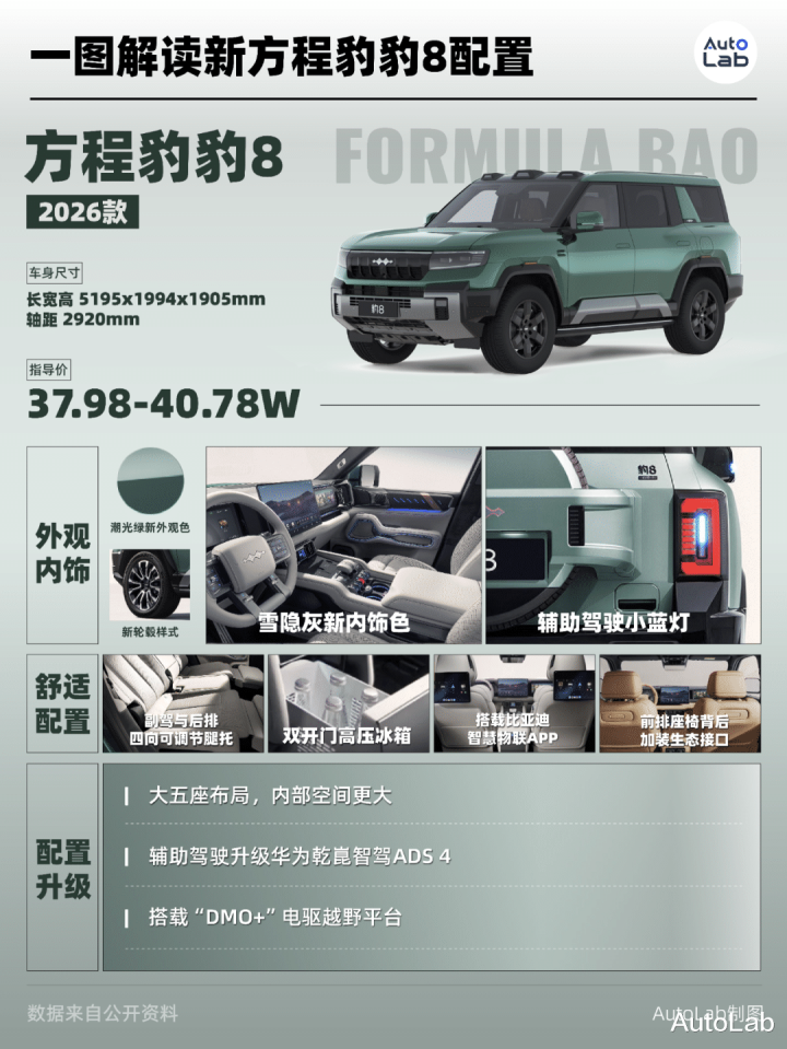 昨晚,方程豹5长续航版和豹8大五座版上市。